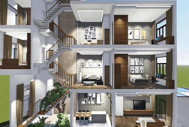 Nhà lệch tầng thiết kế các sàn không nằm trên một mặt phẳng cố định. (Ảnh minh họa)
